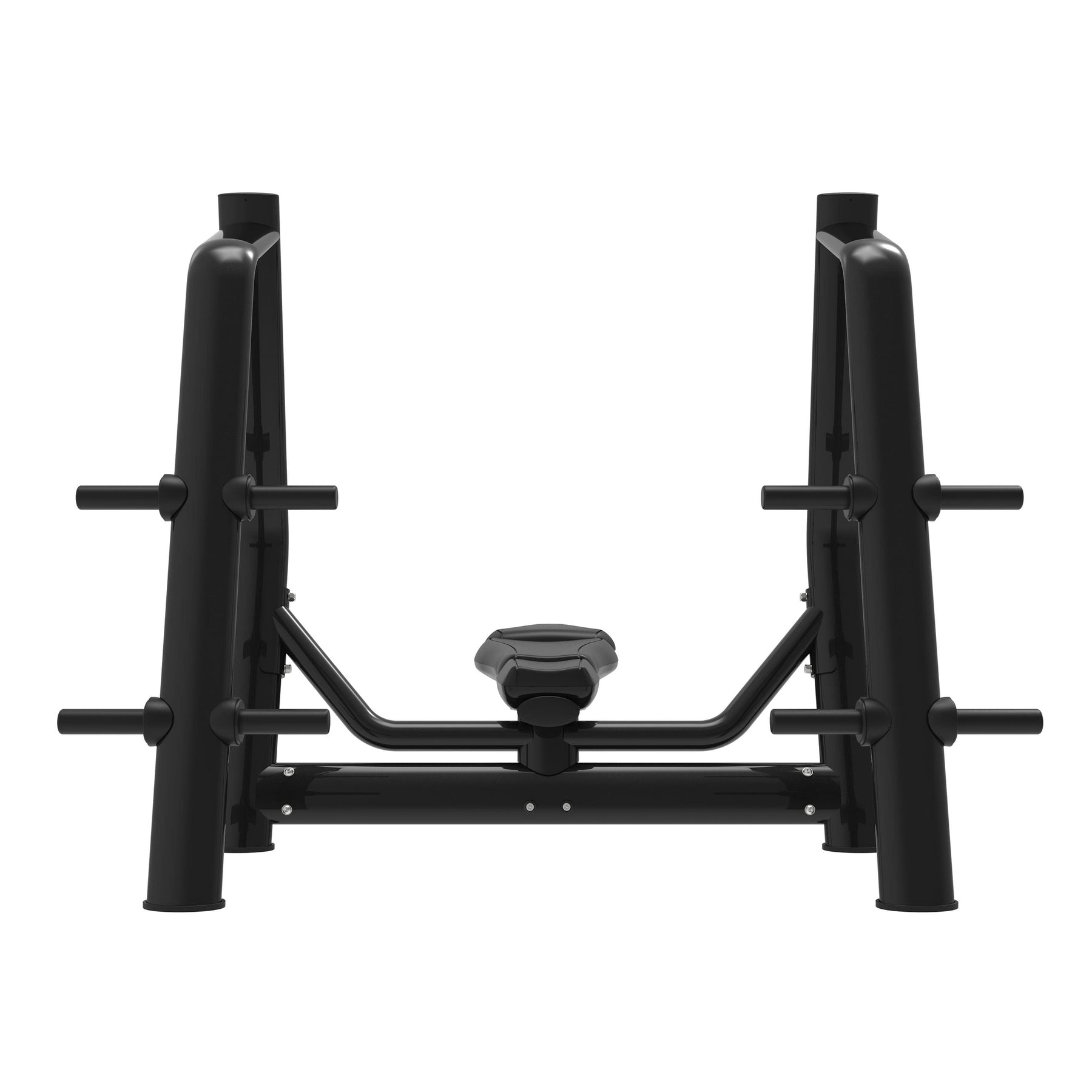 • Sistema de almacenaje integrado: cuatro salidas laterales para guardar discos olímpicos y mantener el área de trabajo ordenada.