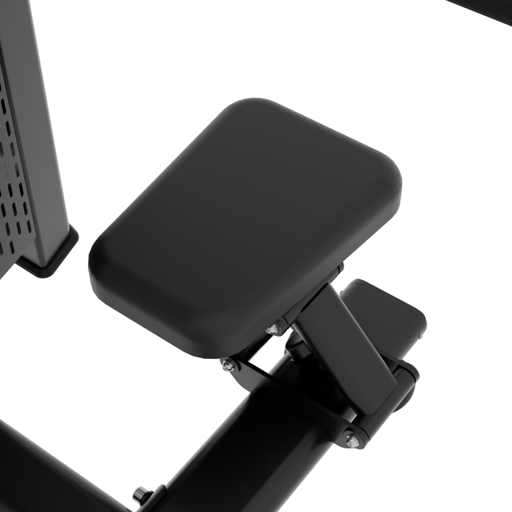 Construida con materiales de alta calidad, esta máquina combina robustez, estabilidad y un funcionamiento suave incluso con un uso intensivo. La torre de pesas de 100 kg, junto con la transmisión 1:1, permite una progresión constante del esfuerzo, adaptándose tanto a usuarios principiantes como avanzados.